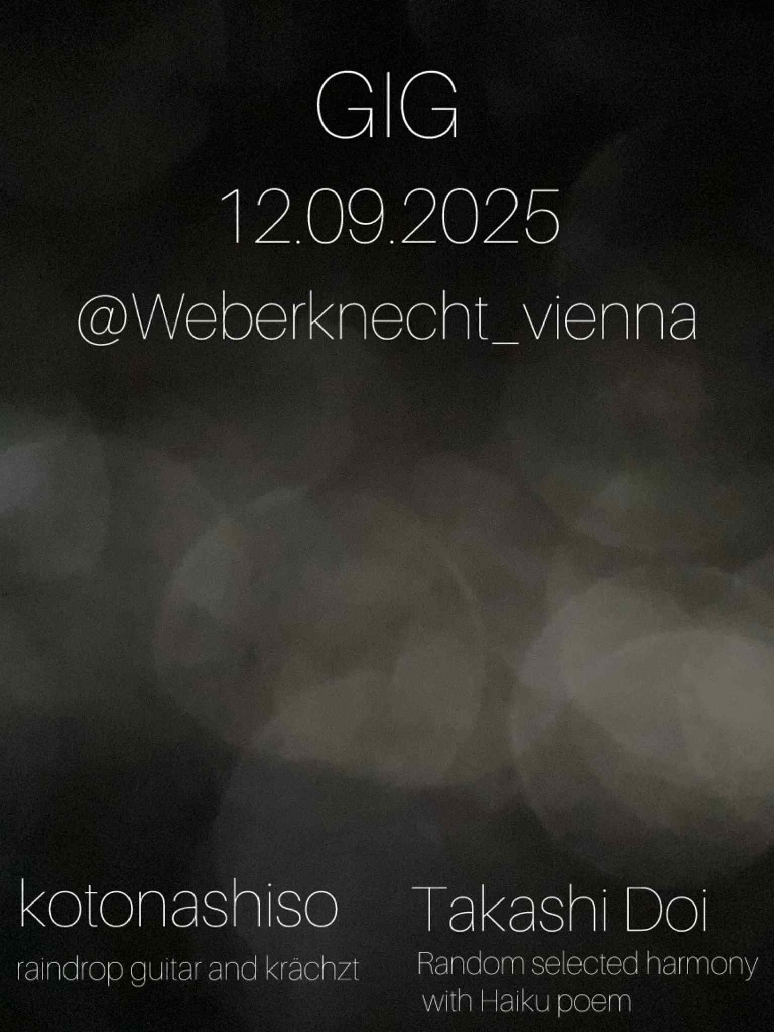 Kinokotobi. Takashi Doi spielt eine trans Akkustische Gitarre mit spontaner Texten. Also ganz spontan.