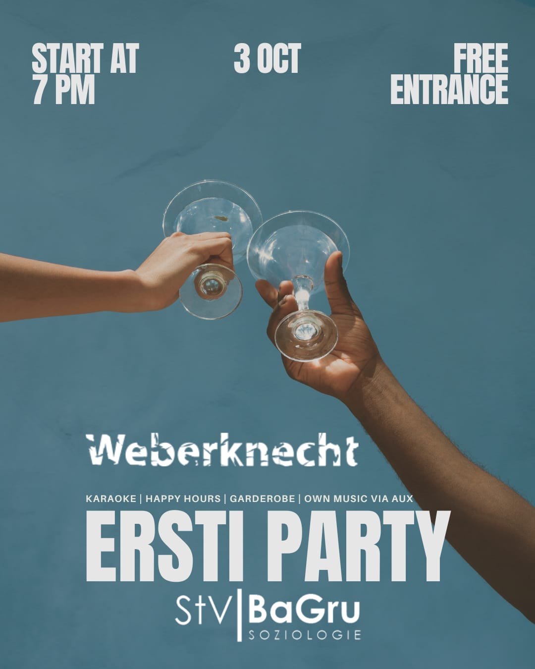 🎉 ERSTI PARTY Soziologie 🎉 Am 3. Oktober ab 19 Uhr im Weberknecht! 👉 Karaoke bis 23 Uhr 👉 Happy Hour & vergünstigte Drinks den ganzen […]