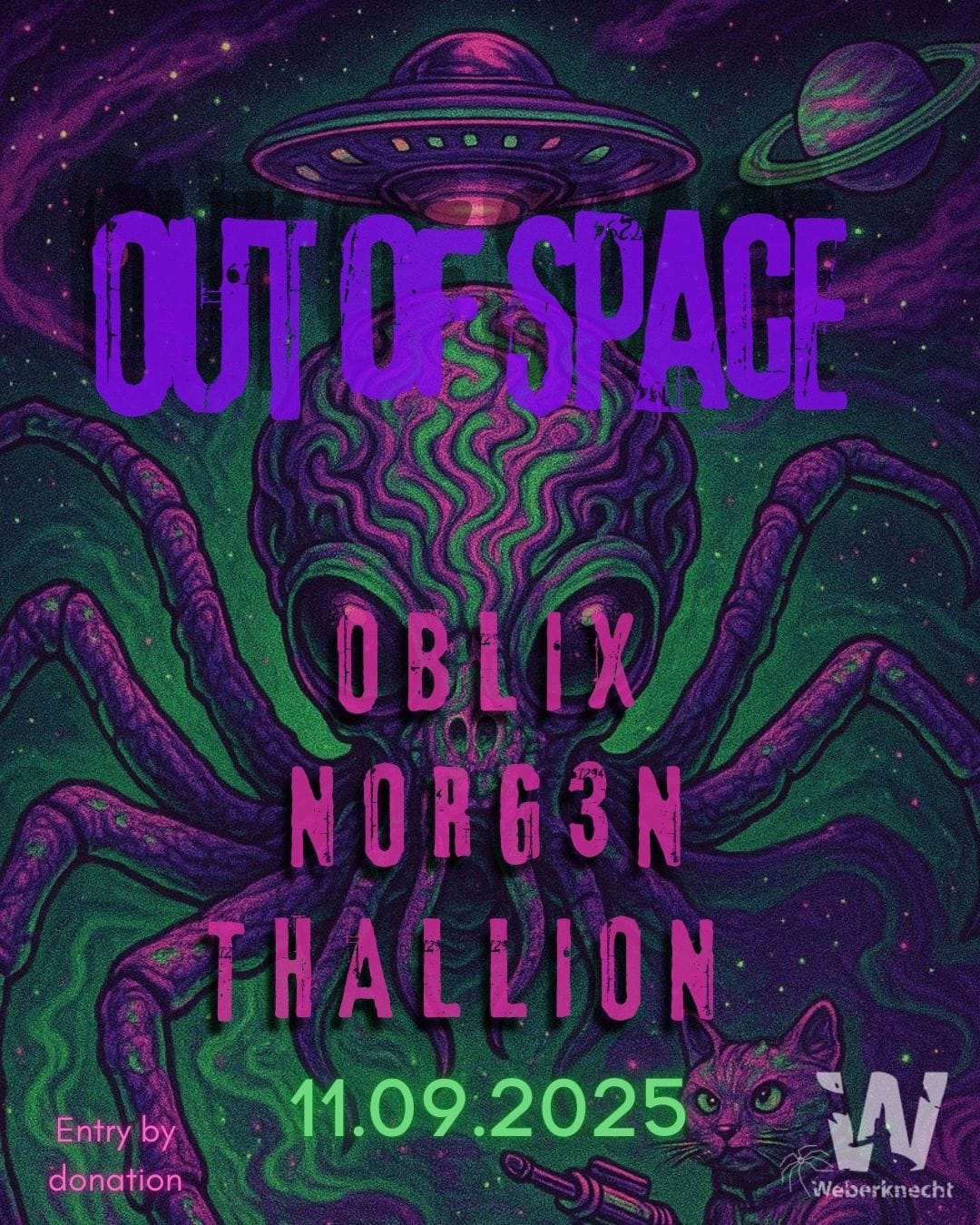 🚀Out of Space🚀 🗓 11.09.25 🕘 23:00 – 06:00 📍 @weberknechtwien Line-up: @oblix.bellatrix @norg3n Thallion https://www.instagram.com/reel/DOY97amDEGn/?igsh=MXNoYnI1aWhlcmt2bA==